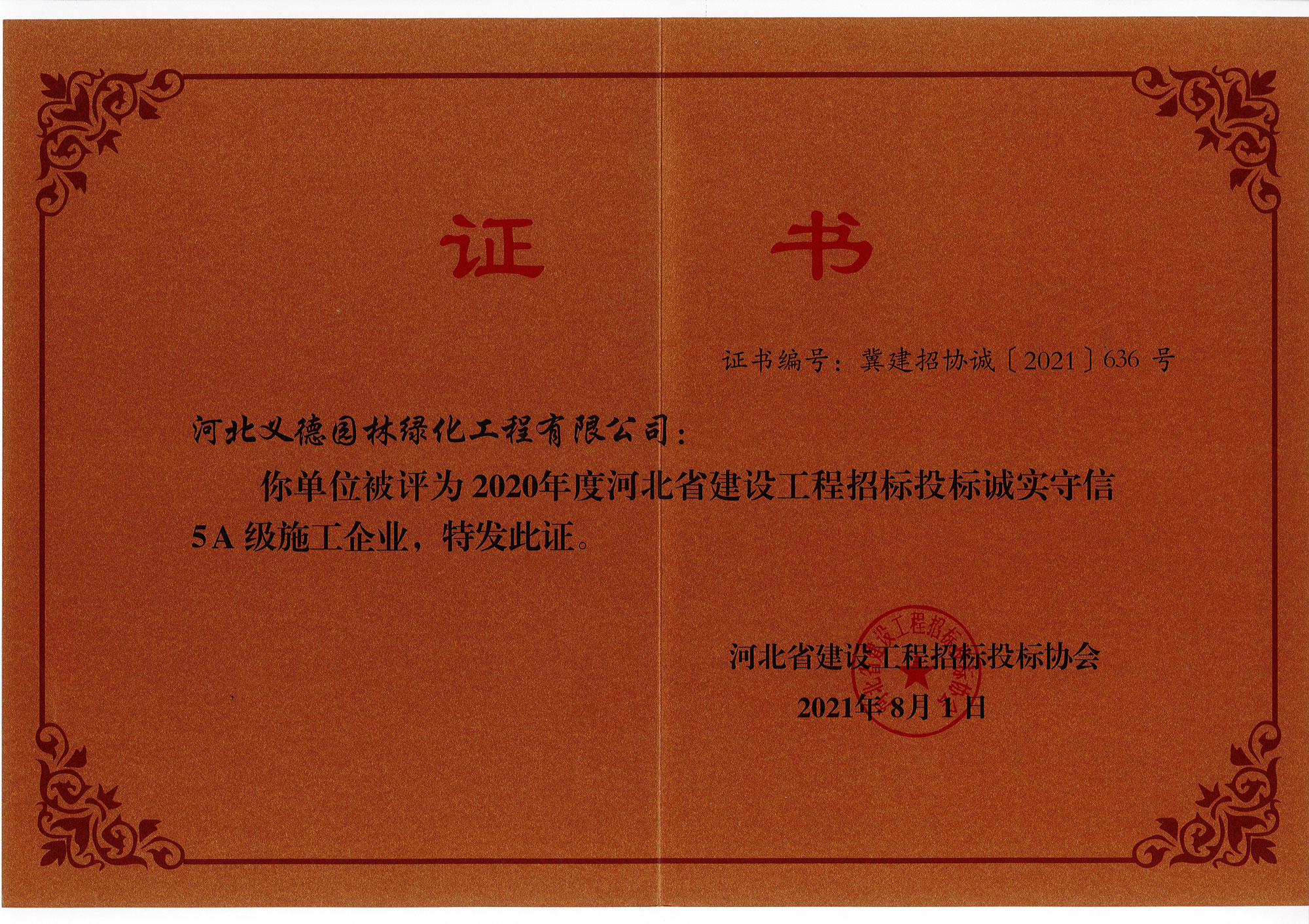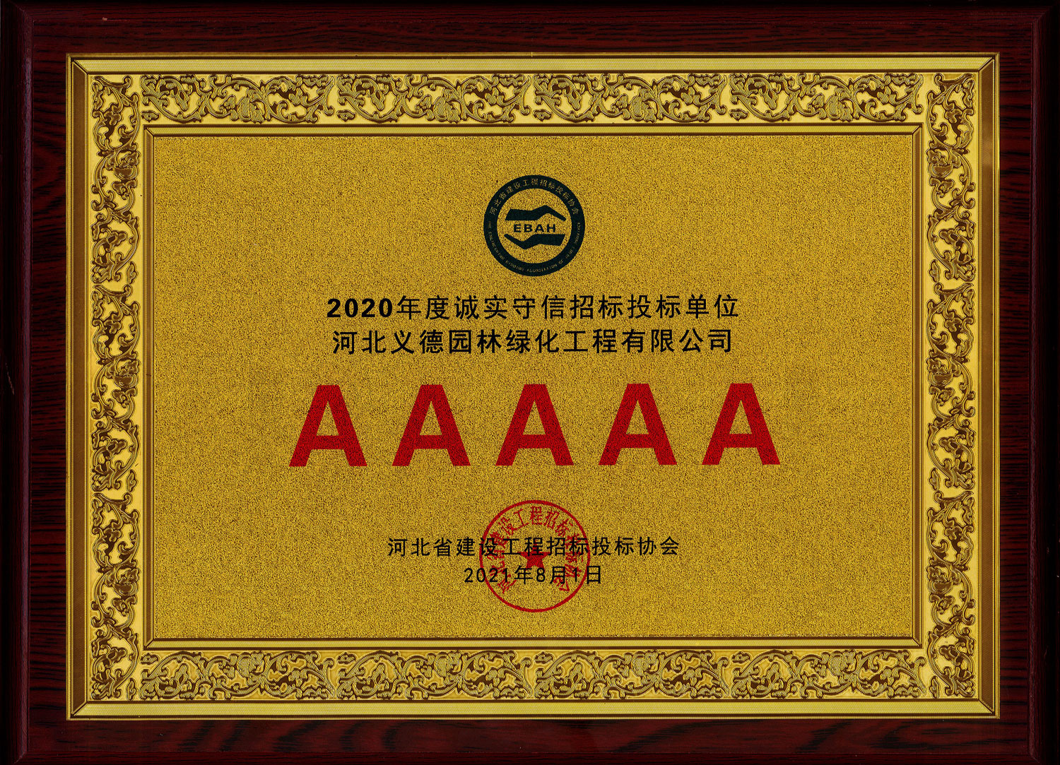 近幾年來我公司被授予2019年-2022年河北省扶貧龍頭企業(yè)、2018年國家林業(yè)標準化示范企業(yè)、2019年度全國苗圃50強、2018-2019年度河北省林業(yè)重點龍頭企業(yè)、2018年保定市精品特色現代農業(yè)園區(qū)、2018年度保定林木種苗協會授予特色苗圃、2018年度北方十佳特色苗圃、2016-2019年河北省建設工程招標投標誠實守信5A級施工企業(yè)等榮譽稱號,2017年保定市林木種苗龍頭企業(yè)、石家莊市2017年度優(yōu)秀園林企業(yè)。